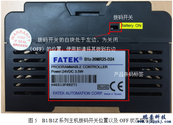 B1/B1Z系列主機的記憶體電池的撥碼開關是位于機身的右側,產品條碼標簽的上方